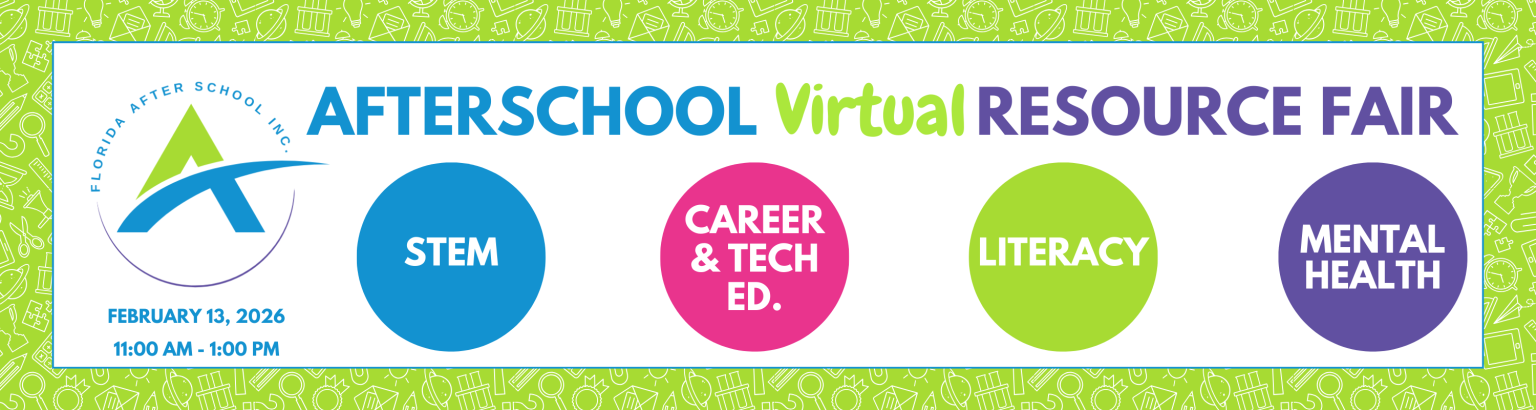 The annual Florida After School Virtual Resource Fair brings together free and low-cost resources on several domains of youth development such as STEM, resiliency, literacy, career readiness, youth entrepreneurship, and more. This opportunity is free to all out-of-school time professionals. The resource fair is held in a speed-dating style with multiple rounds of 10-minute break out sessions.